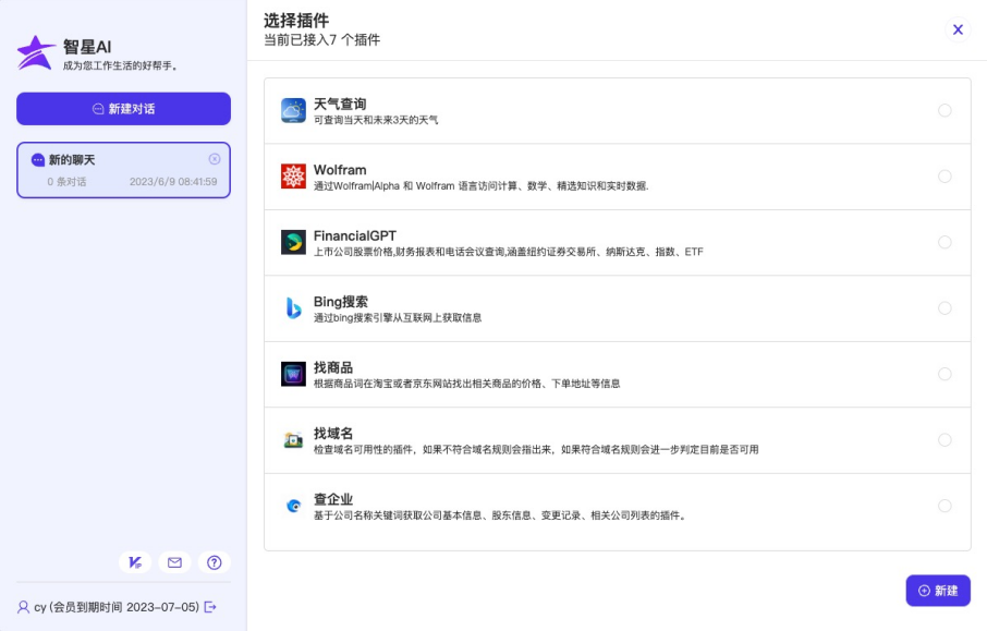 这是国内首款支持插件的AI认知模型产品,智星AI当前已接入7个插件,包括天气查询、Bing搜索、Wolfram等,可以快速提供实时天气信息,解答高等数学问题,进行深度金融分析等。