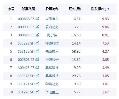 12月4日早盘,燃料电池概念板块普涨,其中,安凯客车、云内动力触及涨停板。