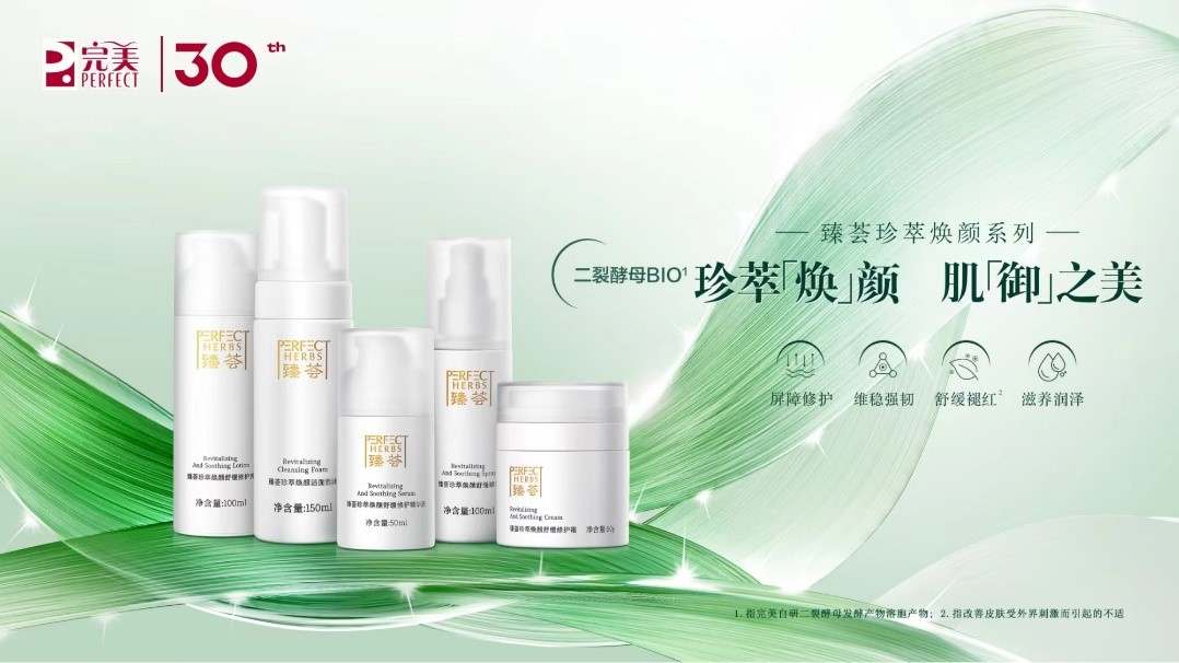 2023年8月25日上市的臻荟珍萃焕颜系列,是完美公司自研的第一套基于皮肤科学研究成果转化的护肤产品,主导的二裂酵母溶胞产物原料的团体标准为国内首个团体标准,填补了该原料行业标准的空白,构建了从核心原料研发到产业化,再到配方应用的全链核心技术自有。