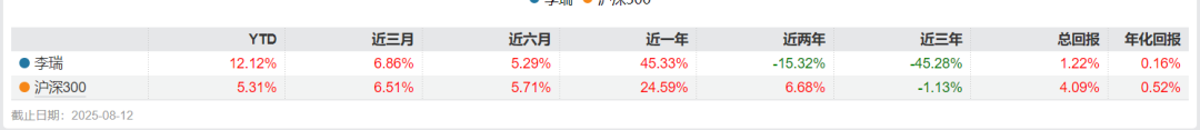 另一位权益研究部总经理李瑞,虽然业绩优于王然,近一年回报45.33%,但近2年、近3年均跑输沪深300。