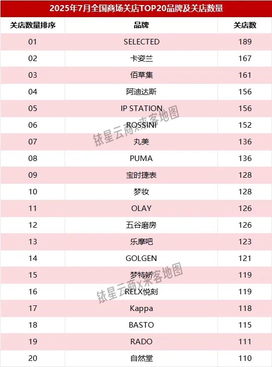 在品牌开关店上,报告显示,全国商场7月TOP30开店品牌总共开出2194家店,环比6月的1799家店增加了395家。但闭店的同样不少,美妆更是成了重灾区。7月全国商场闭店最多的品类当属化妆品,6个品牌共关了828家门店,每个品牌均关店超100家。