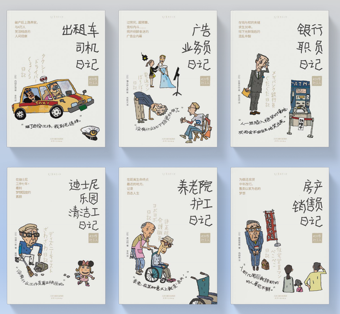 一面是“单手拿着名片,倒地不起的中老年人形象”,一面是“静静地、有力地燃烧着”的作者们。这套书不仅记录了中老年群体的职场挣扎,也展现了每个打工人将会面临的共同境遇。
