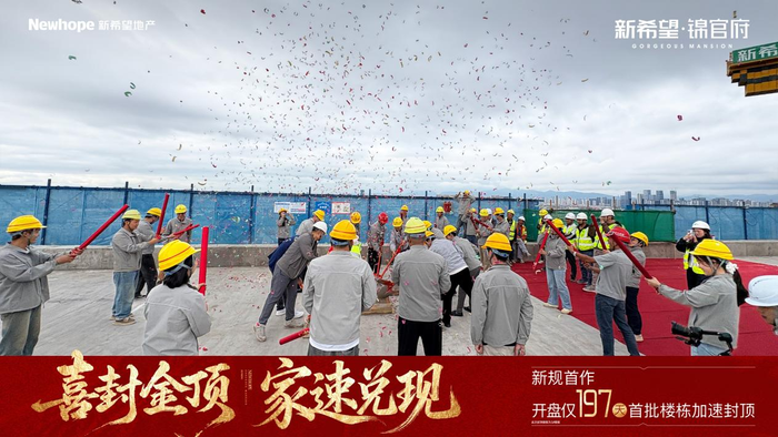 9月28日早上,新希望·锦官府举行首批房源主体封顶仪式,而这距离项目首开仅过去了197天!当天,新希望地产相关领导、工程单位相关领导及各班组工作人员,现场见证这一重要时刻!