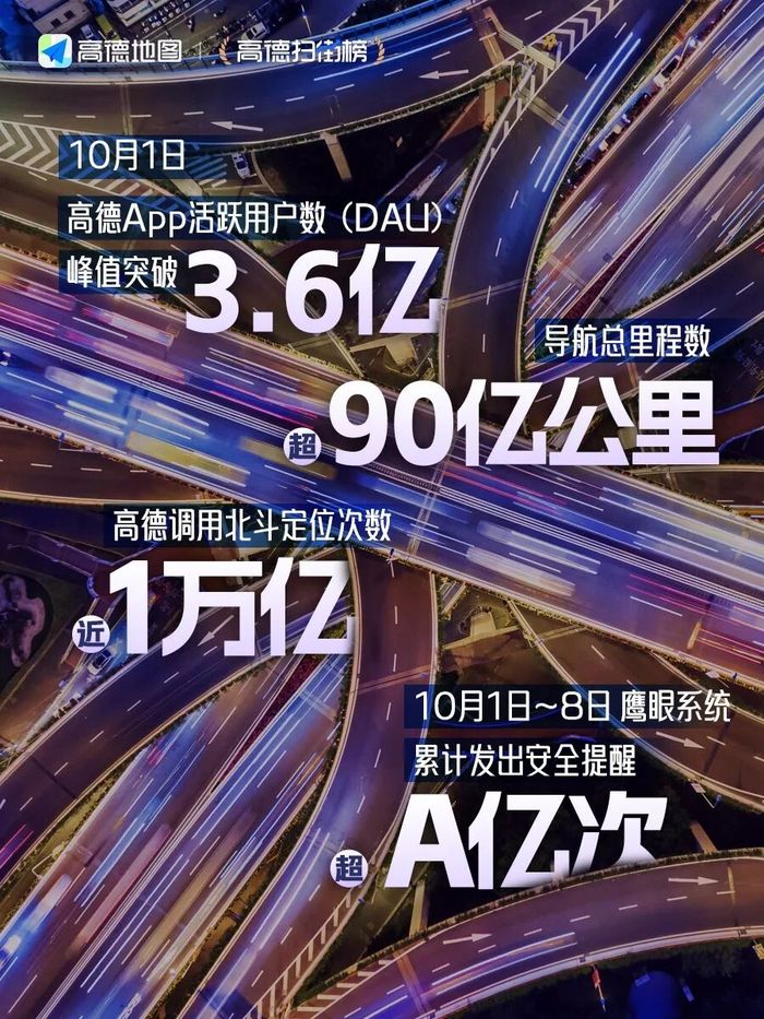 放眼全球,很难找到比这规模更大的秋季迁徙。根据交通运输部据初步统计,10月1日至8日,跨区域人员流动量约24.32亿人次,创历史同期新高;日均3.04亿人次,同比增长6.2%;其中,自驾出行是绝对主力,占比约八成。极致的出行消费高峰期把一贯低调的高德推到了聚光灯下。