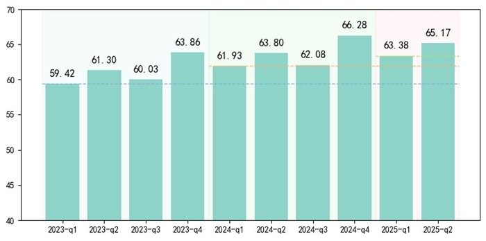 数据显示,消费者购买品质品牌商品的趋势继续增强,从2025年一季度的63.38增加到二季度的65.17。淘宝、京东、拼多多、快手、抖音在供应链深度、数据精准度、用户信任度上陆续建立护城河,其中,2025年,淘天集团在商品抽检上预算同比增长100%。
