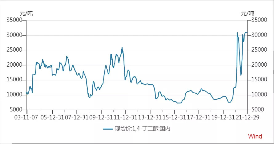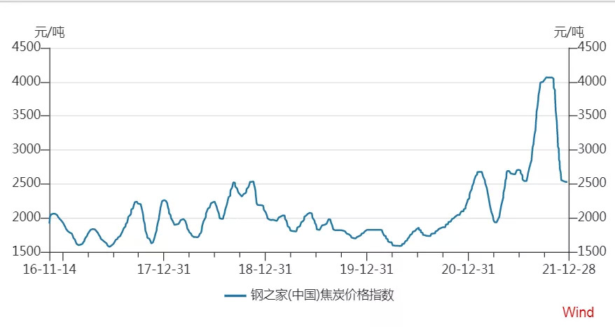 不仅如此,向上推算,生产一吨BDO需要1.2吨电石(碳化钙),而电石又需要大量焦炭和石灰石;在2021年的碳中和大背景之下,焦炭产能扩产不利,导致焦炭成本同样迅速上行。