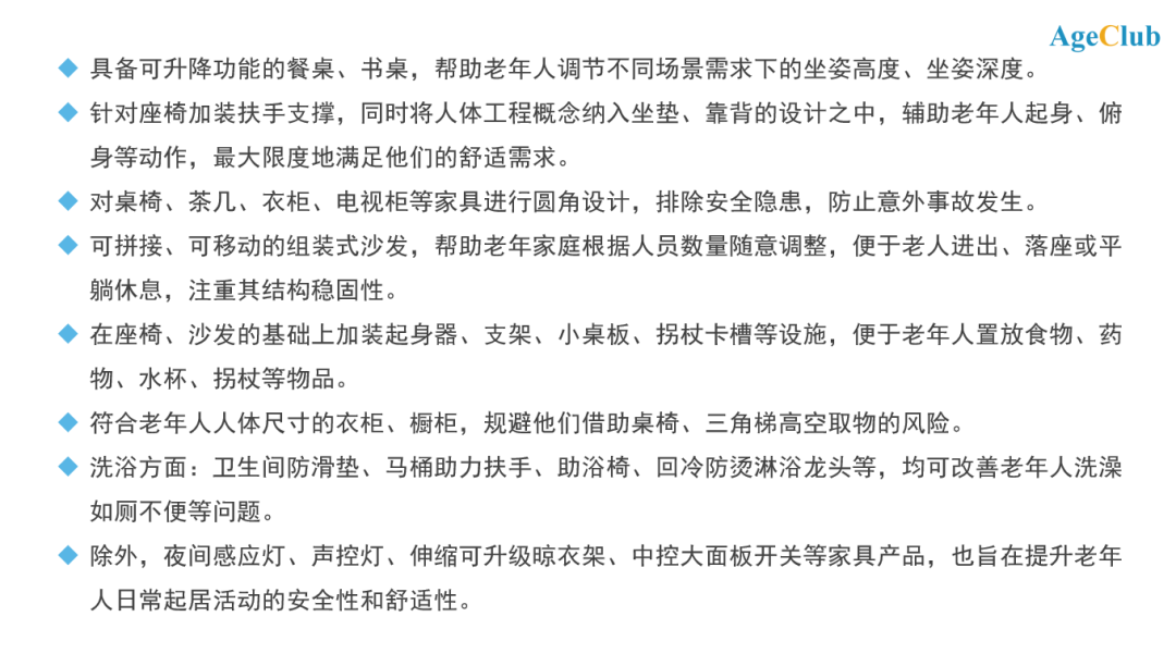 AgeClub简单梳理了国内适老化家具市场的发展现状: