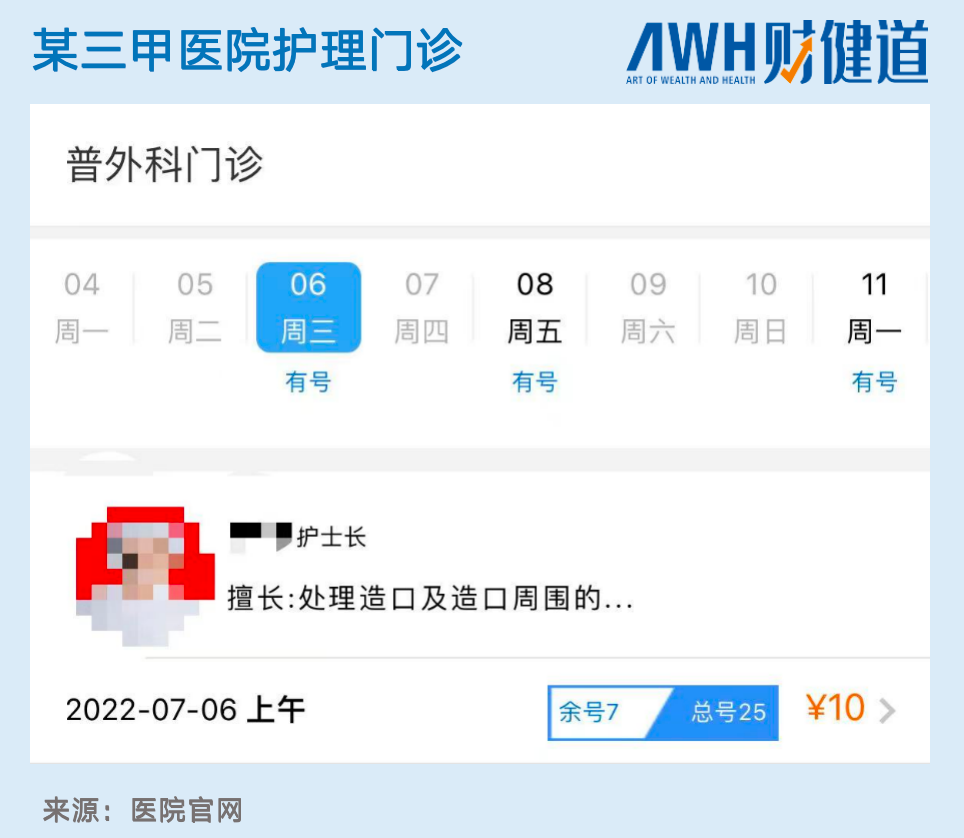打个比方说,一位压力性损伤的病人到医院面诊,首先在门诊换药室由护士评估伤口情况,转到医生处挂号,由医生开具换药处方,再由门诊护士换药,一整个过程总结下来不是在缴费处排队中,就是在诊室排队中,或是在换药室排队中,时间成本、挂号成本淹没在医院中,实际上,如果护士拥有一定的处方权,即可解决大部分换药问题。