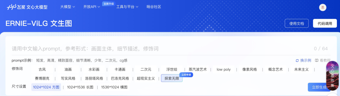 为了降低AI生成绘画工具的学习成本,百度的文心一格在使用界面上提供了常见的修饰词供用户选择,帮助用户快速上手。