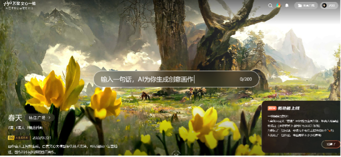 互联网大厂、人工智能企业都蠢蠢欲动,抓紧时间入驻这一蓝海领域。国内百度率先下场推出了AI 艺术和创意辅助平台文心一格,盗梦师、6pen、TIAMAT等国内初创平台也在社交媒体热度颇高。