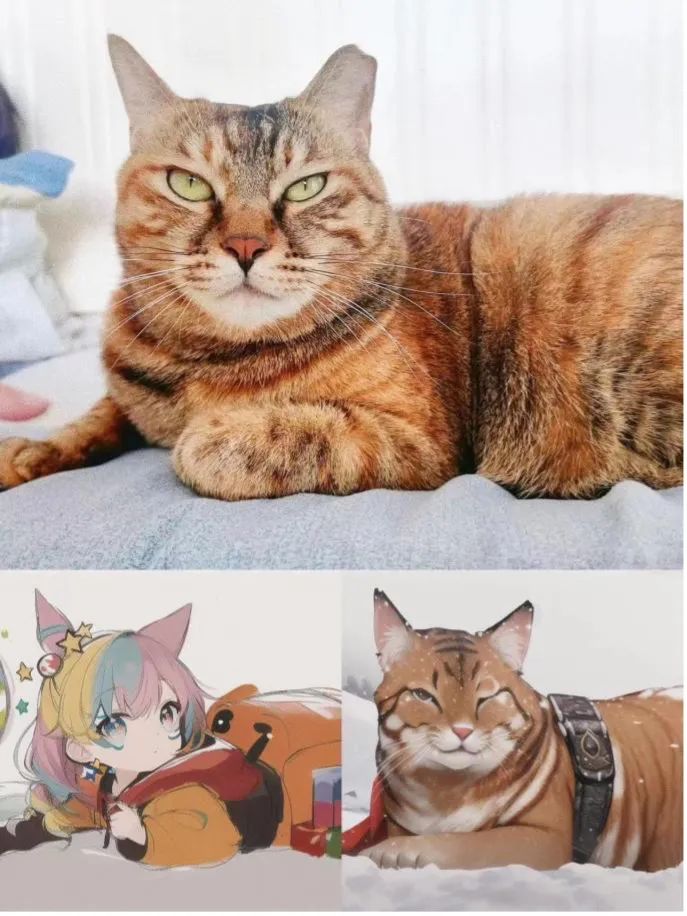 在短视频平台搜索AI绘画小程序,一键上传自家宠物猫的照片,等待25秒,会得到什么呢?