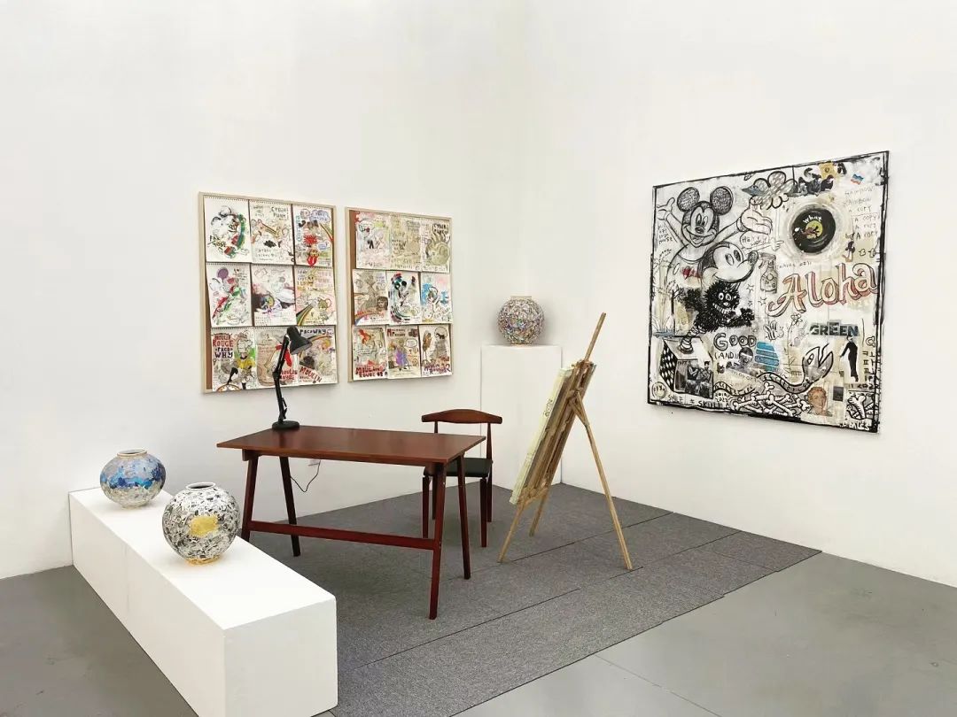 这是Pacowhy的创作一隅,艺术家将自己的日常生活搬进展馆中,墙面上装订的手稿代表了艺术家日常创作中的孜孜不倦,书桌周围的瓷器和画架,表明了艺术家的创作态度与灵感。只有日复一日地努力,才能创作出令人无限遐想的图像小说。