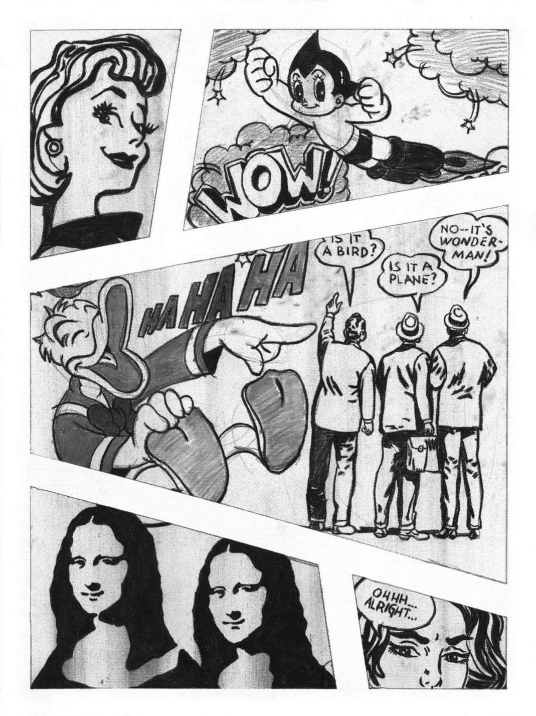 在欢乐背后,艺术家也留下了一些隐晦的叙述:略显沉郁的文字,严肃的社会议题,生命的悲欢离合。这些叙述中透露出的压抑、遗憾、疑惑,无奈,对未知的恐惧,至此,欢快的百老汇演出又似乎成了默剧。详看画面的角角落落,Pacowhy将自己的生活篇章细细记录下来,时间在这里变得缓慢,我们能还原艺术家的人生经历以及个中滋味。这里是现实和理想的交界,是梦,爱,和初心的秘密花园,这里有岁月淡淡的愁思,有重振旗鼓的决心,有平淡日子的惬意…