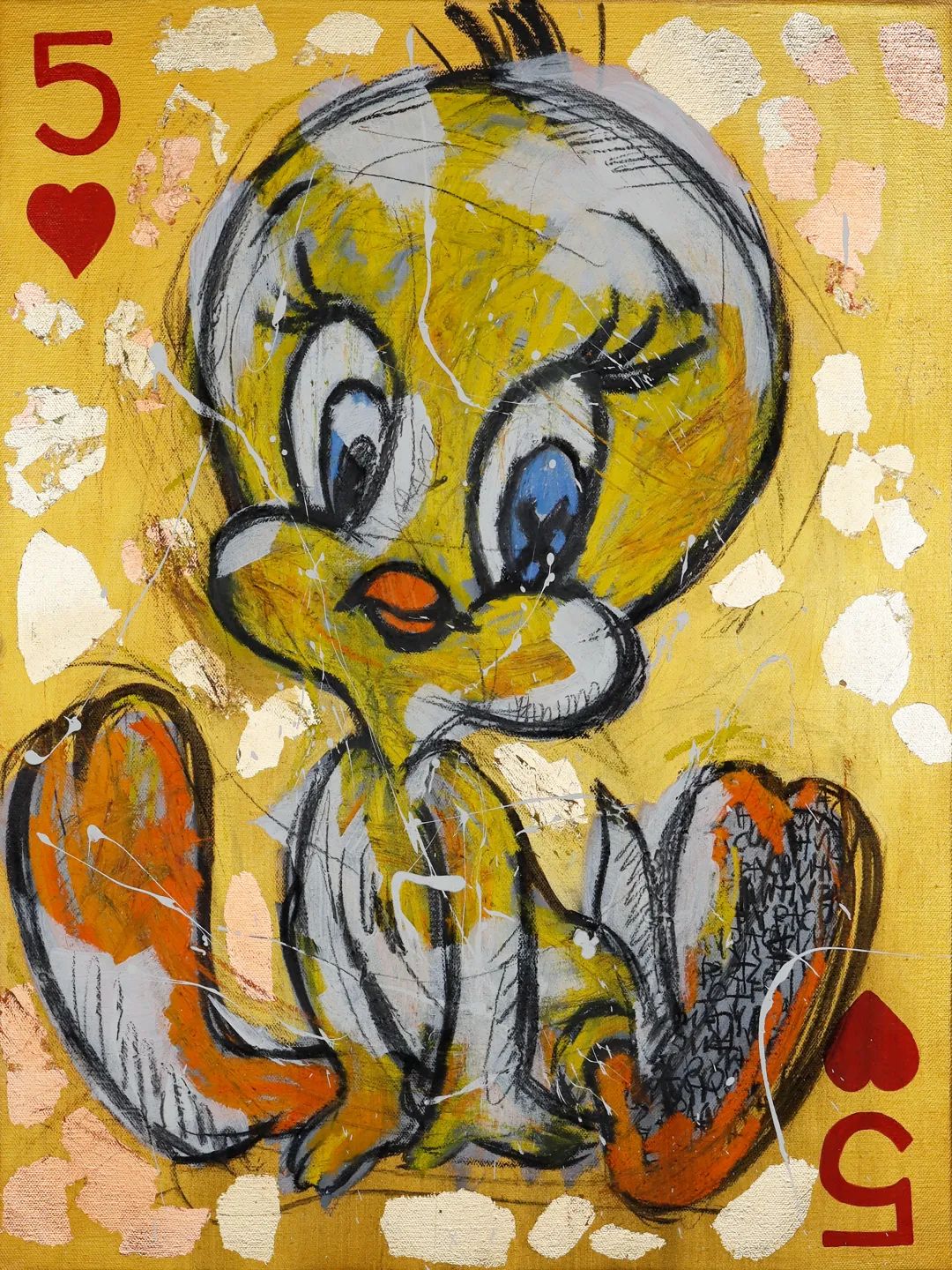 在画面的角落里,我们找到了演唱这首歌的Elvis Presley (猫王),或许艺术家在创作歌颂爱的画面时,听的却是恳请爱人温柔以待的忧郁旋律。Pacowhy的作品呈现出两种截然不同的氛围,在画面中形成带有矛盾和冲撞感的表达,在带来强烈视觉冲击力的同时,也让观众在思虑中徘徊。