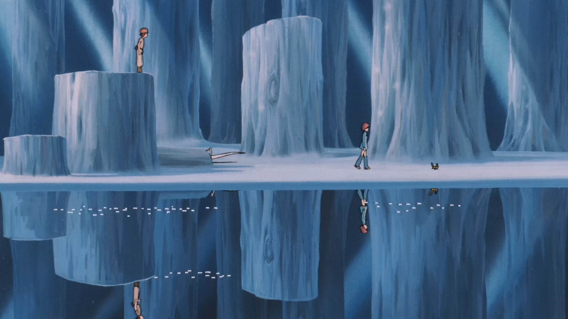 最经典的“格式塔转换”发生在《风之谷》中。女主角娜乌西卡总能看到旁人看不到的东西,比如老爷爷摩挲着自己那双因为孢子剧毒长满肿瘤的双手,而在娜乌西卡眼中,这却是一双勤劳又美丽的手。人类以为污染的罪魁祸首是腐海,于是发动战争并妄图烧光腐海,这反而导致腐海中的王虫愤怒狂奔,在力衰而竭后化为巨大的孢子,使得腐海更加泛滥。只有娜乌西卡明白,灾难的始作俑者是人,而腐海是在保护世界,它把大地的毒素吸收到自己的身体里,再枯死化为细沙,流淌到地下形成空气洁净的蓝色森林,与地上世界形成了鲜明对比。