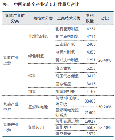 在氢能研发方面,据中国石油集团经济技术研究院的文章,中国氢能技术研发与专利迎来爆发期,年均增速超20%,年均申请量超过8000件。2021年,中国氢能专利申请量占全球的77%,有效氢能专利占全球的45%。这使得我国已成为全球氢能专利产出的主要国家。这当中,截至2022年9月底,中国氢能“制-储-输-用”全产业链专利总量达到119629件,产业链中下游专利占比达到73.6%。