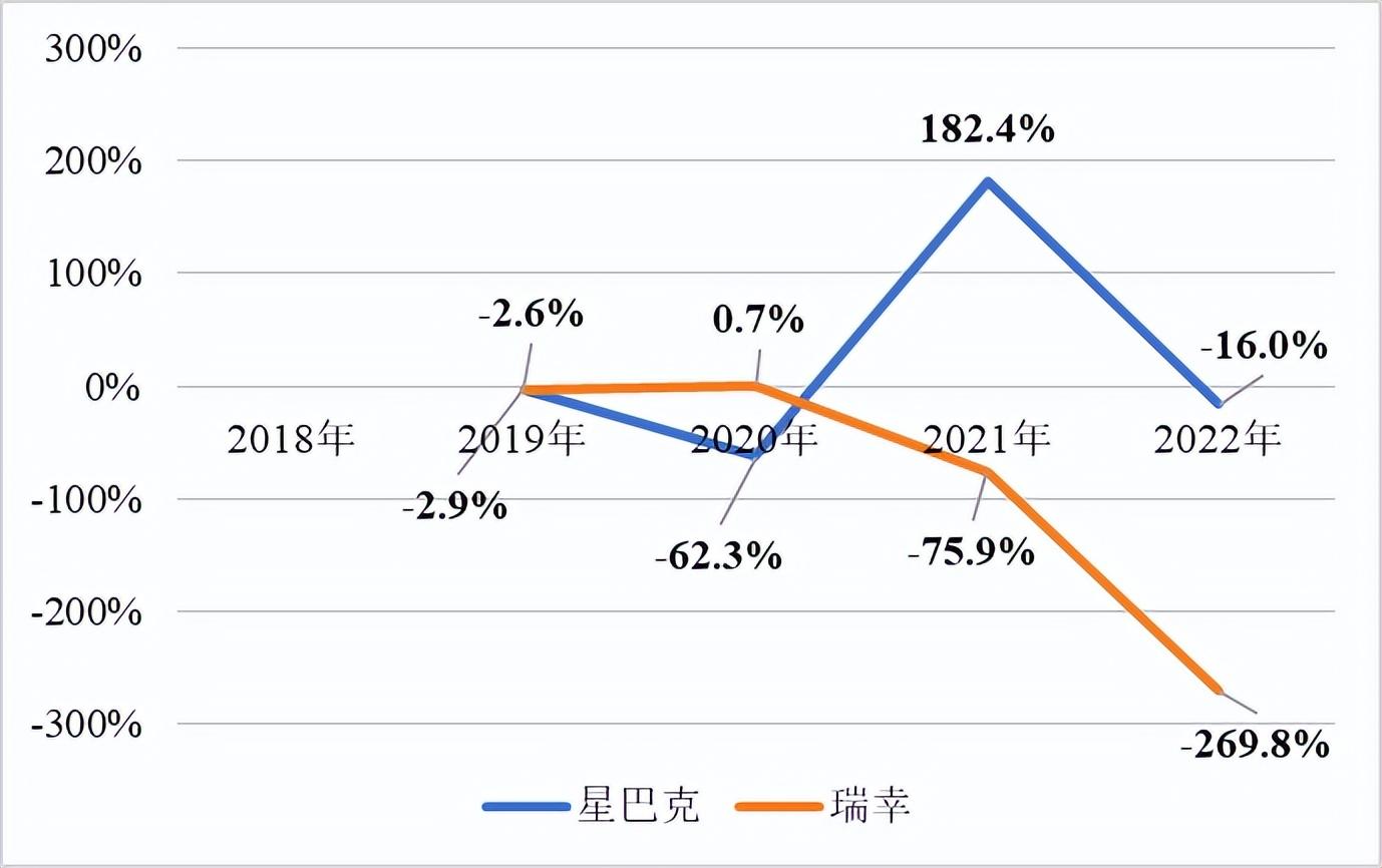 图1:运营费效比(利润/运营费用)增长率,资料来源:穆胜咨询;星巴克财报、瑞幸财报